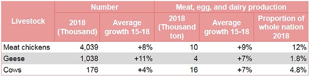 Livestock: Raising pigs is quite popular. Cow farming is developing.